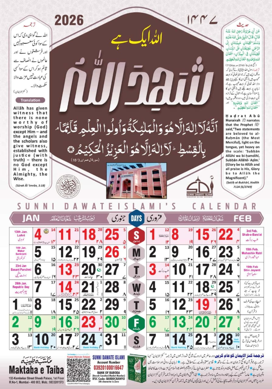 SUNNI DAWAT E ISLAMI CALENDER 2026